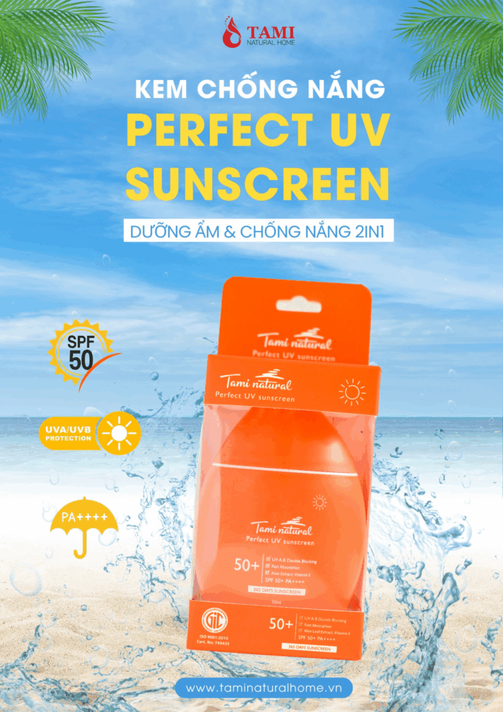 Perfect UV Sunscreen là sản phẩm được nghiên cứu và sản xuất bởi Tami Natural Home – thương hiệu mỹ phẩm thiên nhiên đạt chuẩn FDA, CGMP, ISO 9001:2015. Tami cam kết mang đến những sản phẩm an toàn, lành tính và hiệu quả cho làn da Việt. Mỗi giọt kem là sự kết hợp tinh tế giữa khoa học hiện đại và nguồn nguyên liệu thiên nhiên thuần khiết, giúp bảo vệ và nuôi dưỡng làn da bền vững để bạn tự tin tỏa sáng mỗi ngày.